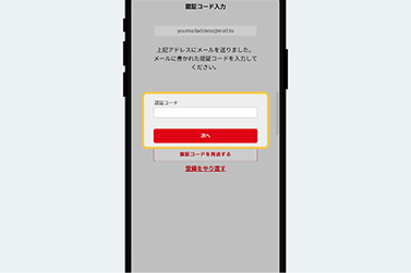 確認した認証コードを入力し、次へを選択します。