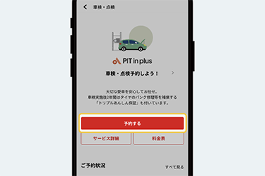 下にあるサービス・予約ボタンを選択します。